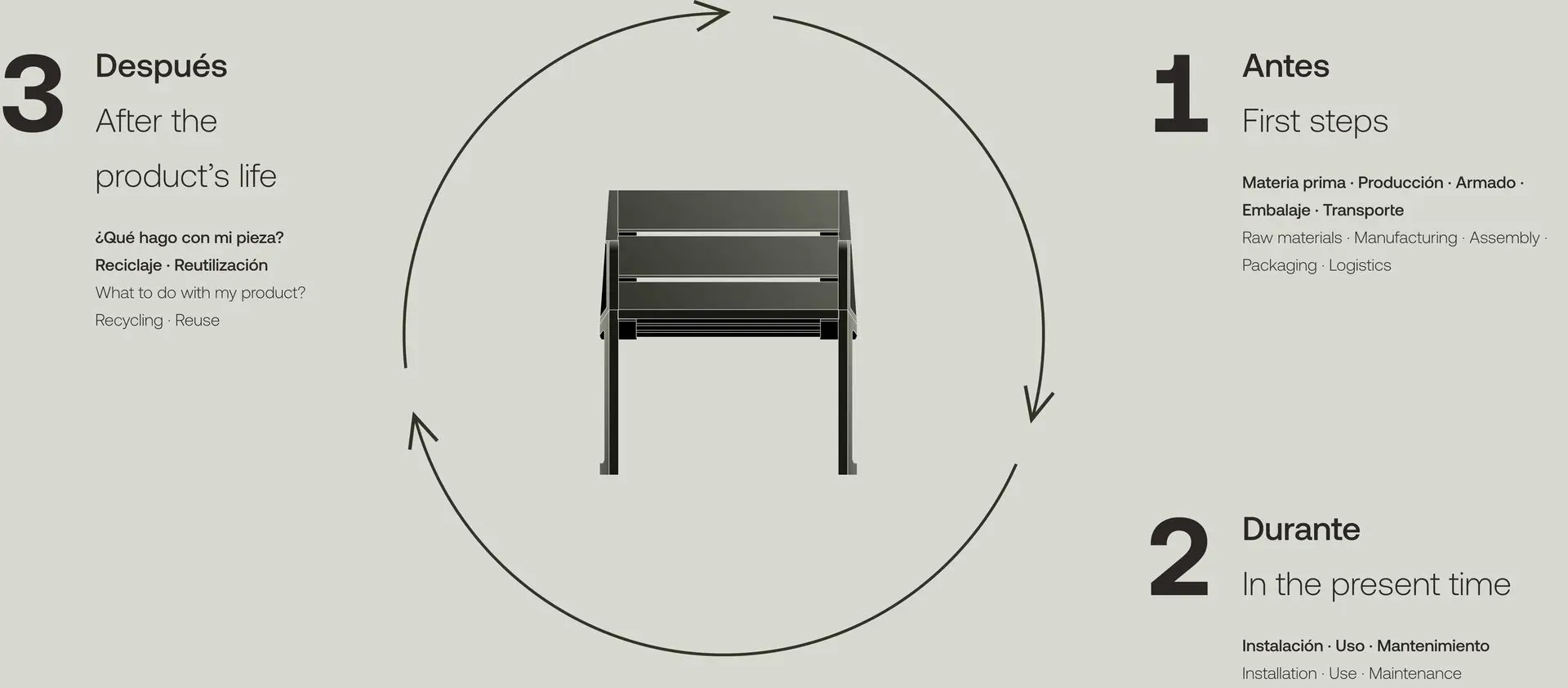 We accompany our pieces with maintenance manuals to help prolong their use, as well as sustainability sheets specific to each design. We also offer personalized advice on what to do with materials at the end of their useful life, providing options for reusing or recycling them appropriately. Our commitment is to ensure that each product has a positive impact on the environment throughout its entire life cycle.